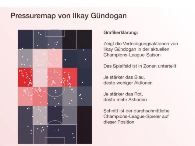 本赛季,京多安打入17个正式比赛进球,是全队第一。年初时,他连拿2次月度最佳球员。而欧冠赛场,京多安则是3球1助攻,传球成功率92%,更震撼的数据是,他在对手进攻三区送出了233次成功传球,场均超过了20次。而在防守端,京多安也是瓜式逼抢的重要一环,从图中可以看出,京多安主要负责在本方左侧的反抢,从颜色上可以看出力度之大。如果今晚能在欧冠决赛登顶,京多安有一定机会去争夺本年度的欧足联年度最佳球员。