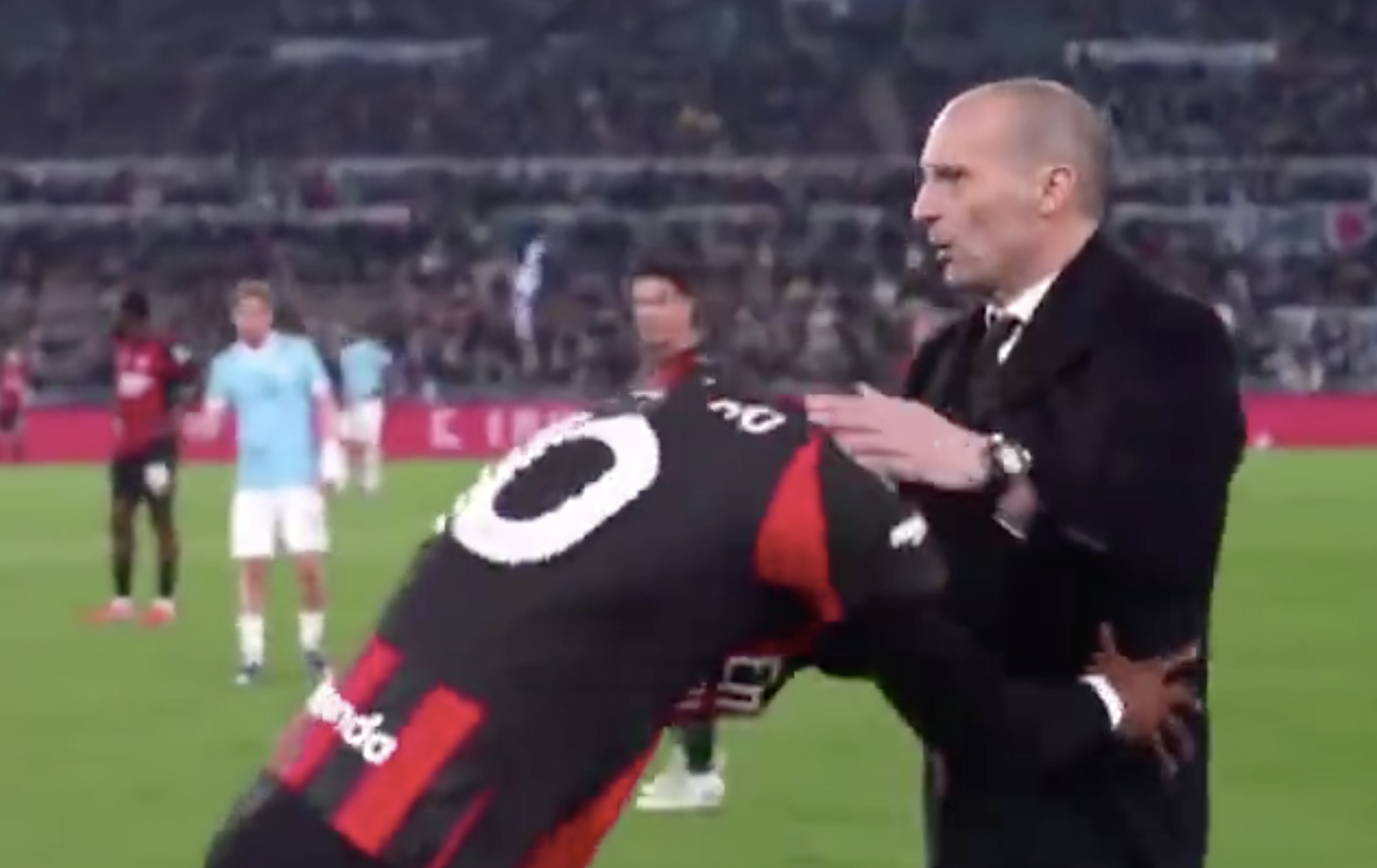 长时间的落后让阿莱格里做出变阵的决定。第67分钟,他换下了首发的莱奥。下场时,莱奥闷闷不乐,走路走得很慢。米兰门将迈尼昂走过来安慰莱奥,但他并不理睬,还将迈尼昂推开。到了场边,莱奥也不给阿莱格里好脸色看。