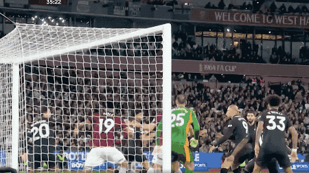 第35分钟,西汉姆联获得角球,多纳鲁马出击失误没能碰到皮球,马夫罗帕诺斯头球破门扳平比分。