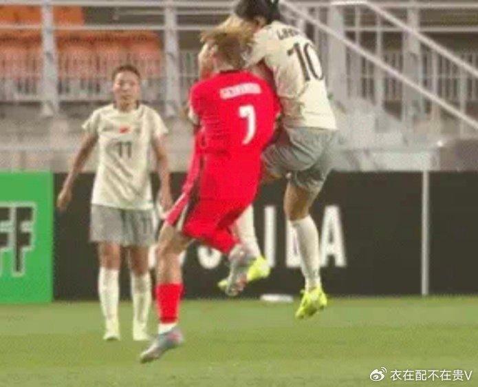 作为中国女足的10号,26岁的王妍雯第55分钟替补登场。在一次空中对抗时,她与韩国女足的7号李金玟相撞之后倒地。